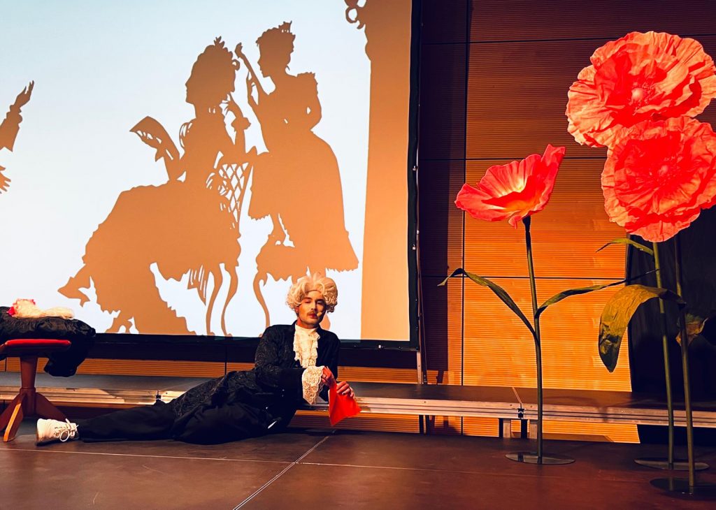 Tatsächlich wird bei unserer Aufführung auch ein Teil der Handlung erzählt, allerdings aus der Perspektive des jungen Pagen Cherubino, der überall dabei war. Er ist etwa 15 Jahre alt und arbeitet beim Grafen als Page. Nicht alle Verwicklungen, die in der originalen Oper vorkommen, wird er erzählen, aber alle, die ihn gerade bewegen.